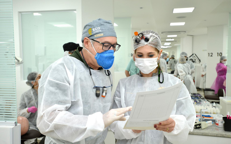 Nesta oportunidade, Marco e Carla assistiram à aula da Primeira Turma Presencial de Dentística, ministrada pelos Professores e Mestres em Dentística, Dr. José Carlos Garófalo, Diretor Científico, e Dr. Gustavo Escudeiro, Diretor Acadêmico da Eco Academy. É um espaço nobre de conhecimento clínico e científico, pensado, desenvolvido e equipado para oferecer aos acadêmicos o que existe de mais avançado em tecnologia de tratamento, tanto no que diz respeito a equipamentos como a materiais e técnicas empregadas, em ambiente rigorosamente biosseguro.
